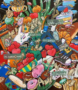 アクリル絵の具やマーカー、ペン等を使用して手書きで制作したイラストです。